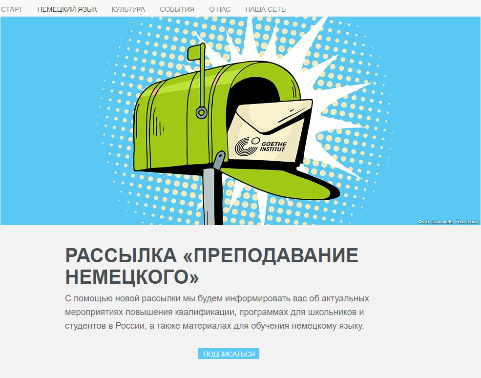 Подписаться можно по этой ссылке: www.goethe.de/russland/deutschunterrichten